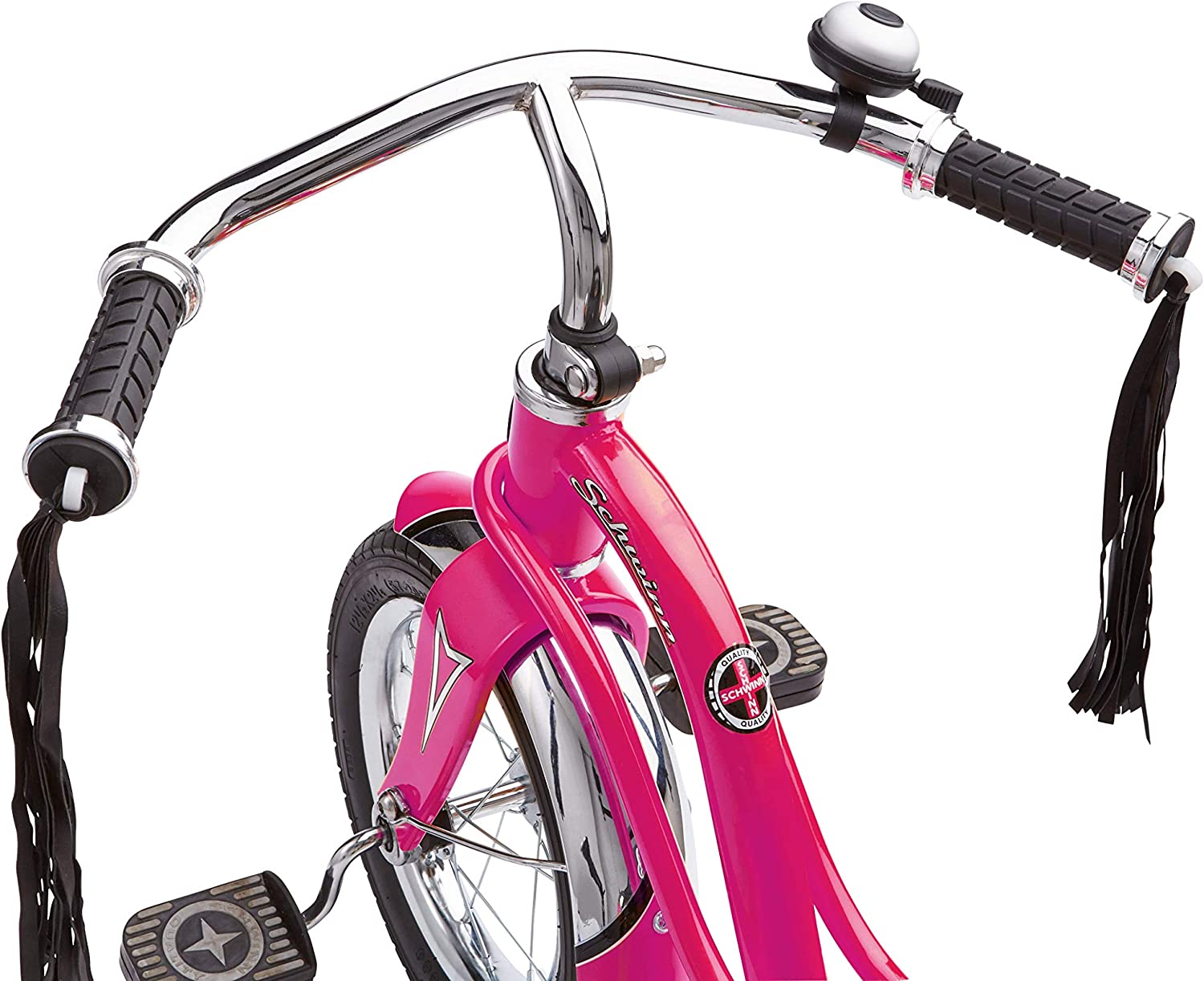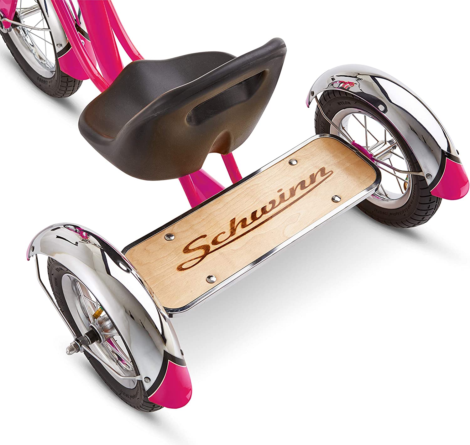 Schwinn Roadster Bike for Toddlers. Kids Classic Tricycle. Boys and Girls Ages 2 - 4 Years Old. Steel Trike Frame. Rear Deck Made of Genuine Wood. & Fabric Tassels. Bright Pink