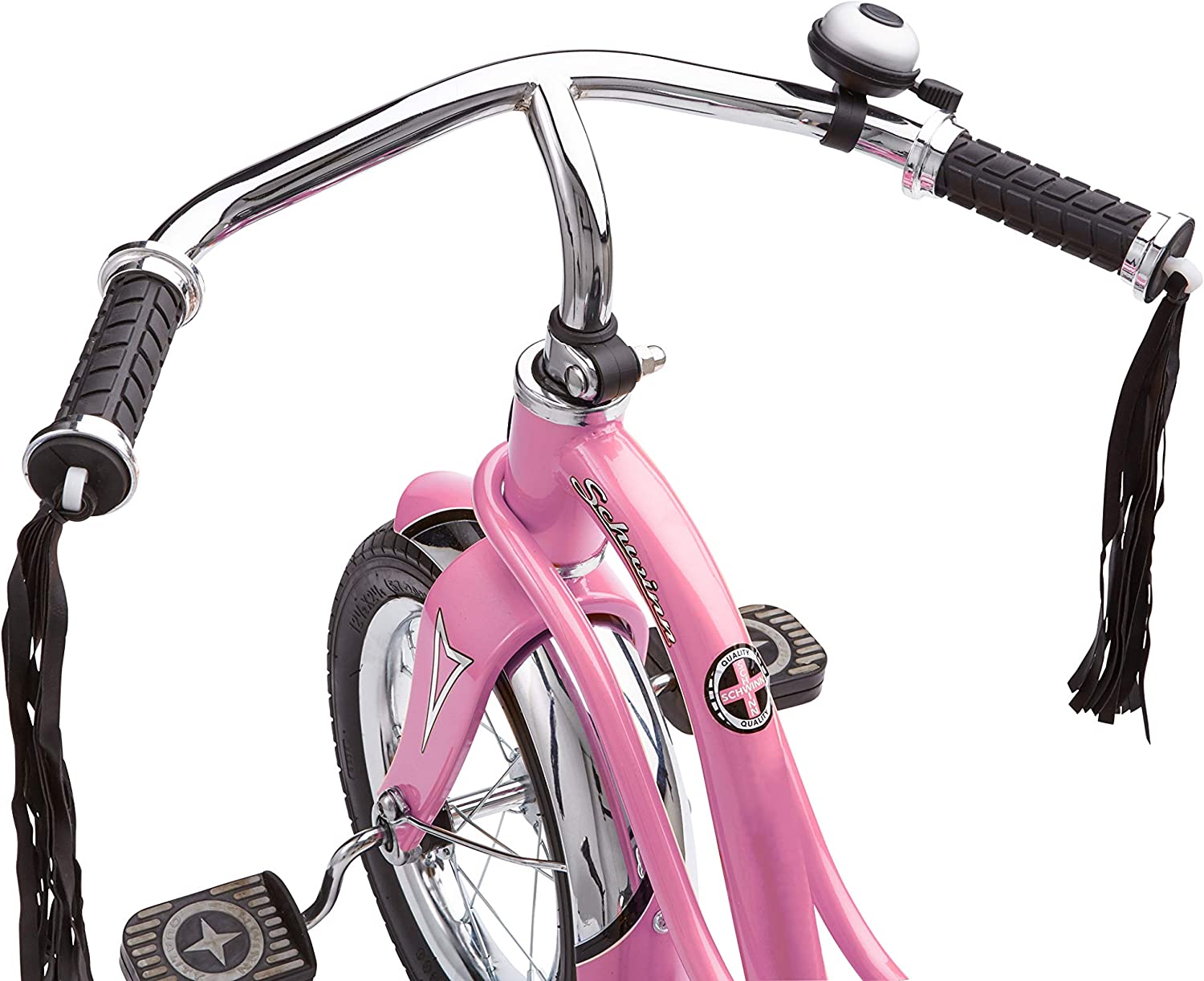Schwinn Roadster Bike for Toddlers. Kids Classic Tricycle. Boys and Girls Ages 2 - 4 Years Old. Steel Trike Frame. Rear Deck Made of Genuine Wood. & Fabric Tassels. Light Pink