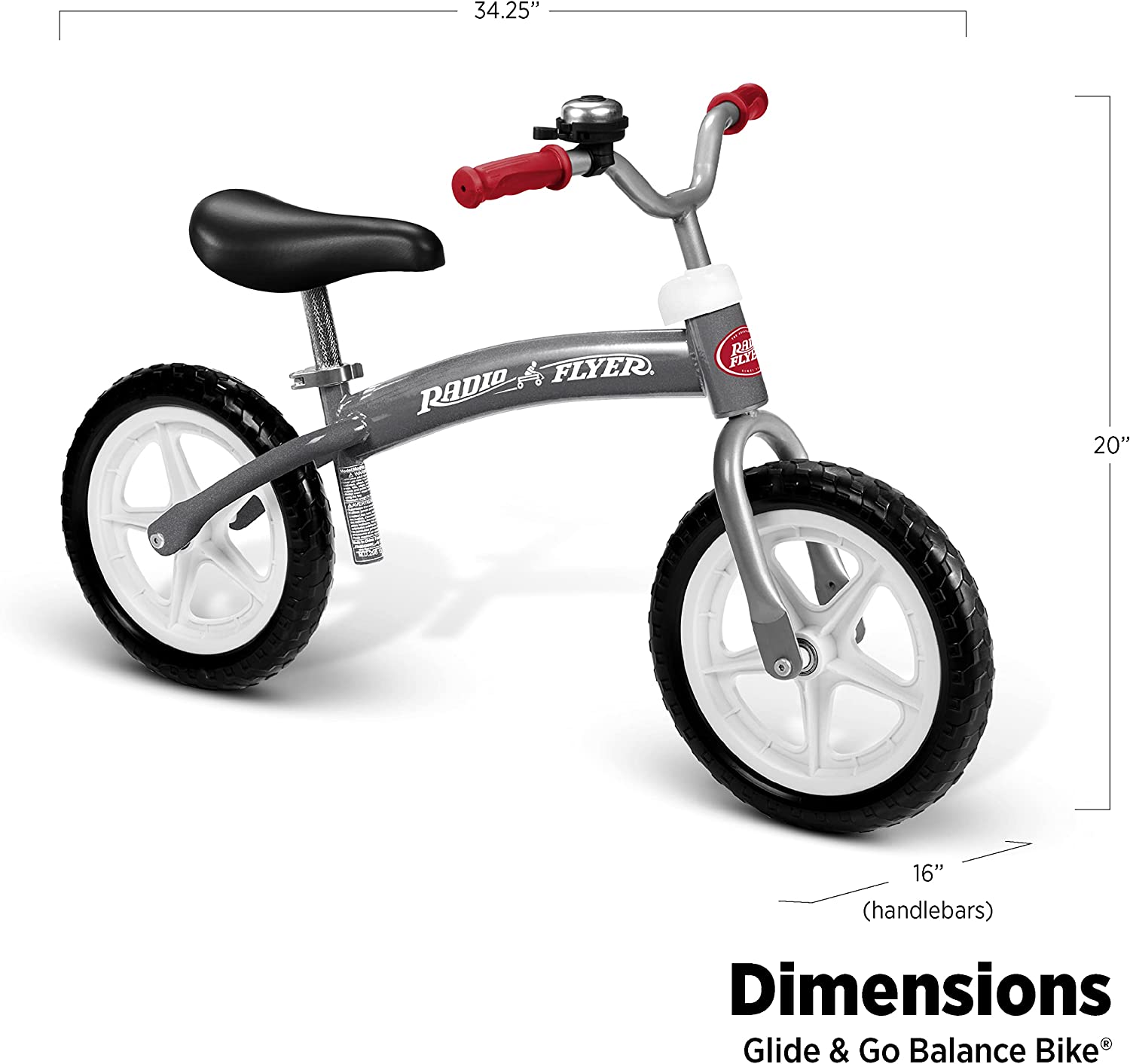 Radio Flyer Balance Bike Glide and Go. Gray Toddler Bike. 11 inches