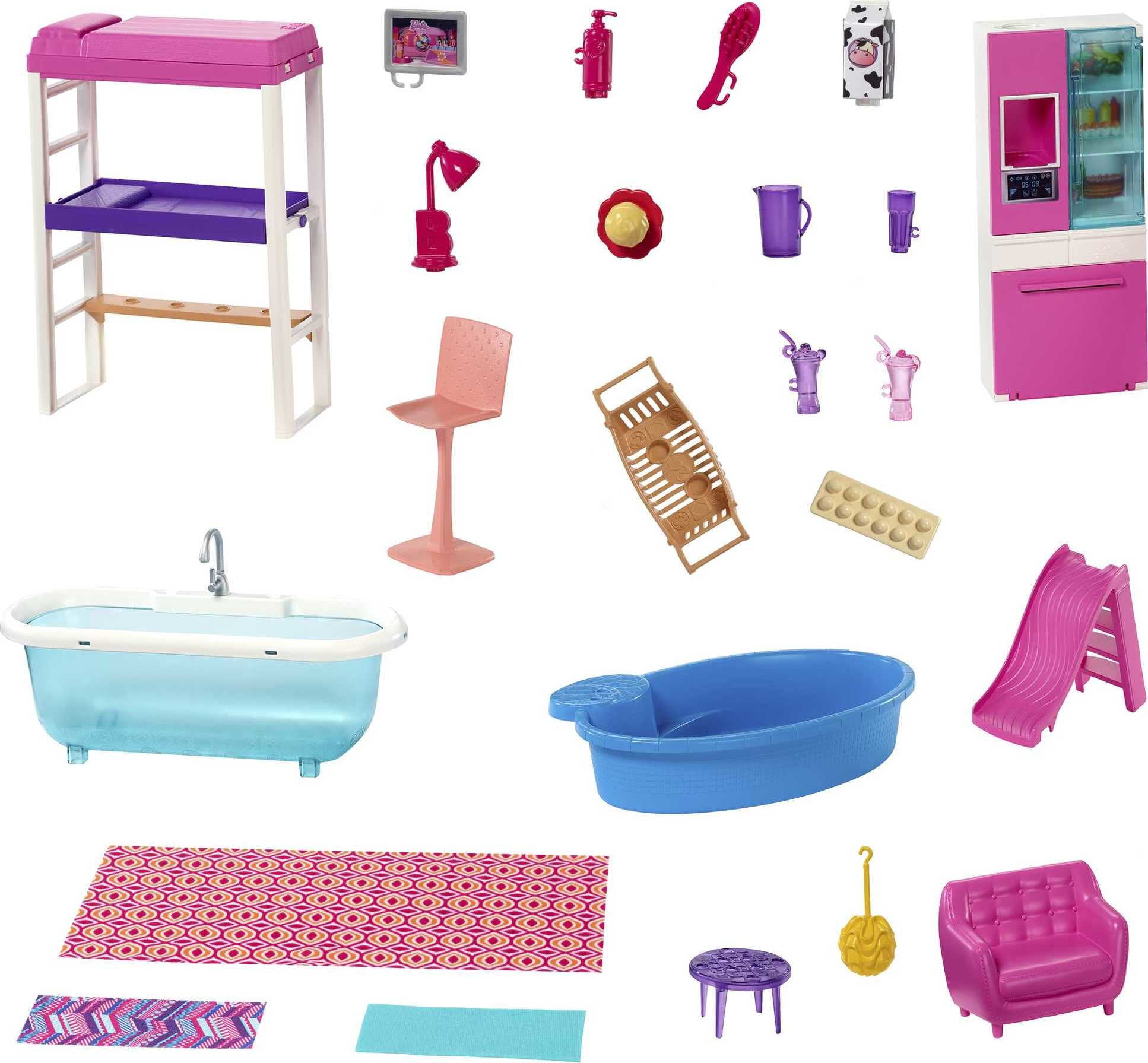 Barbie Dollhouse Set with 3 Dolls and Furniture. Pool and Accessories