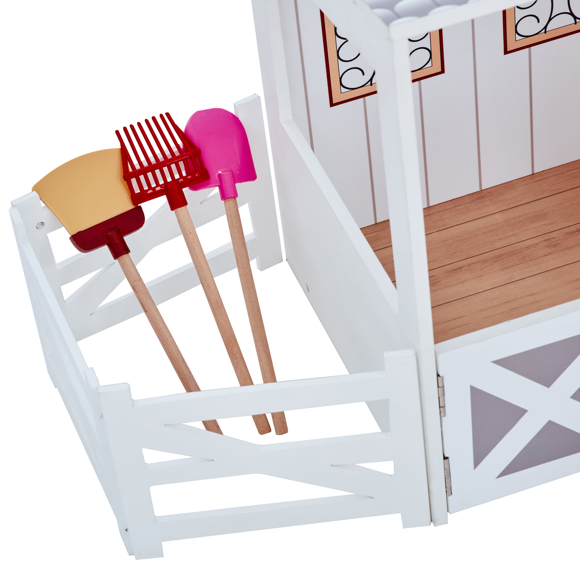 Teamson Kids Dreamland Farm Dollhouse with 14 Accessories. White/Gray