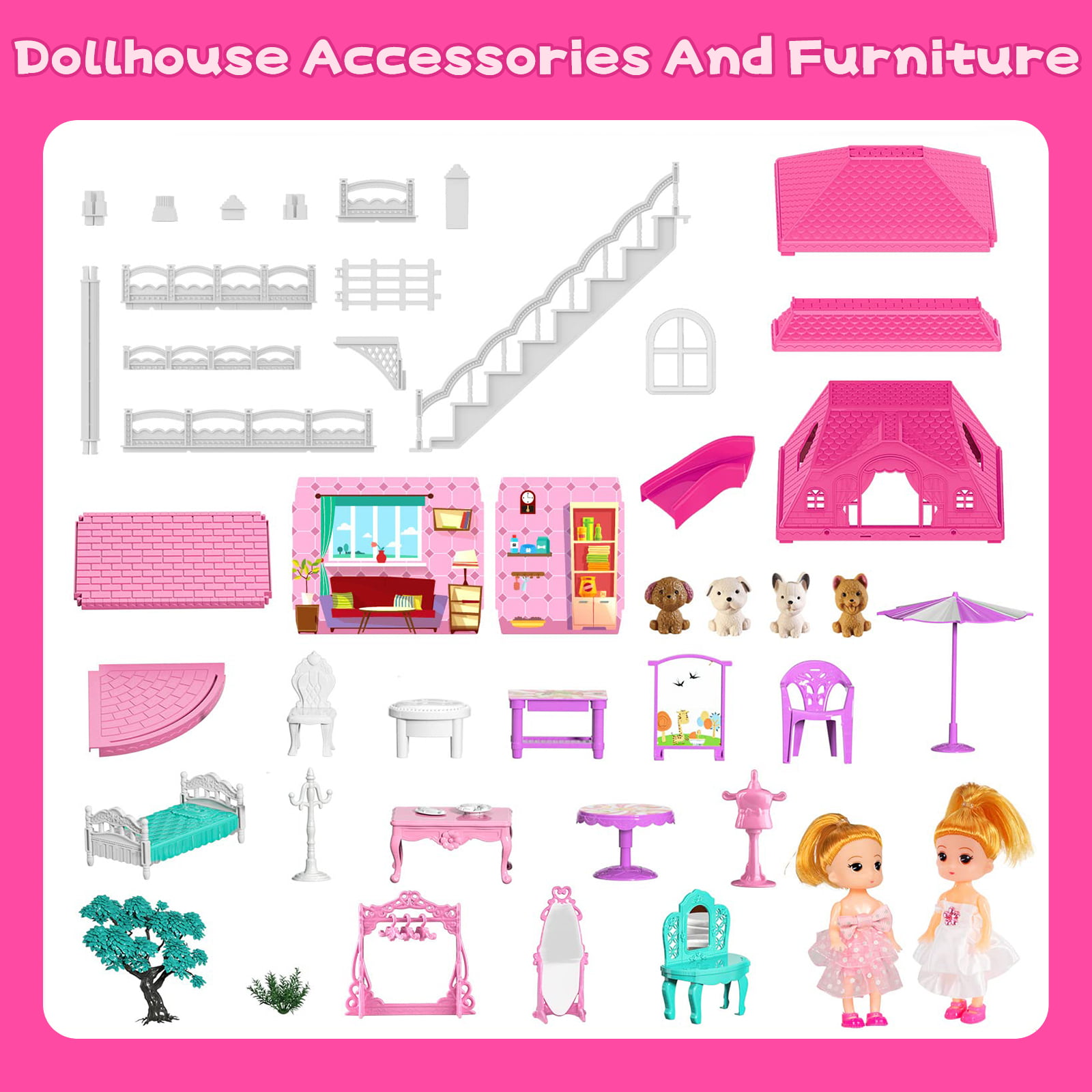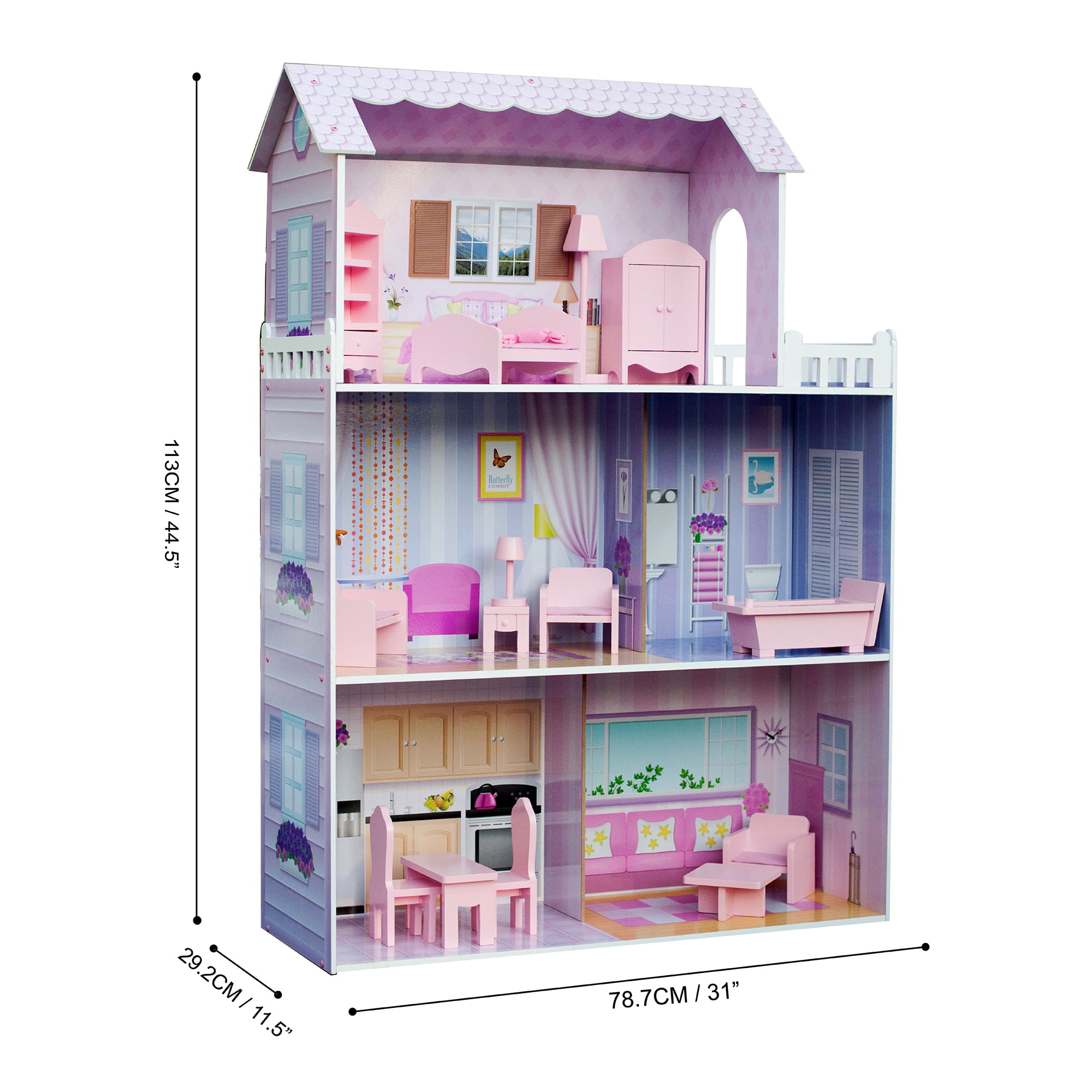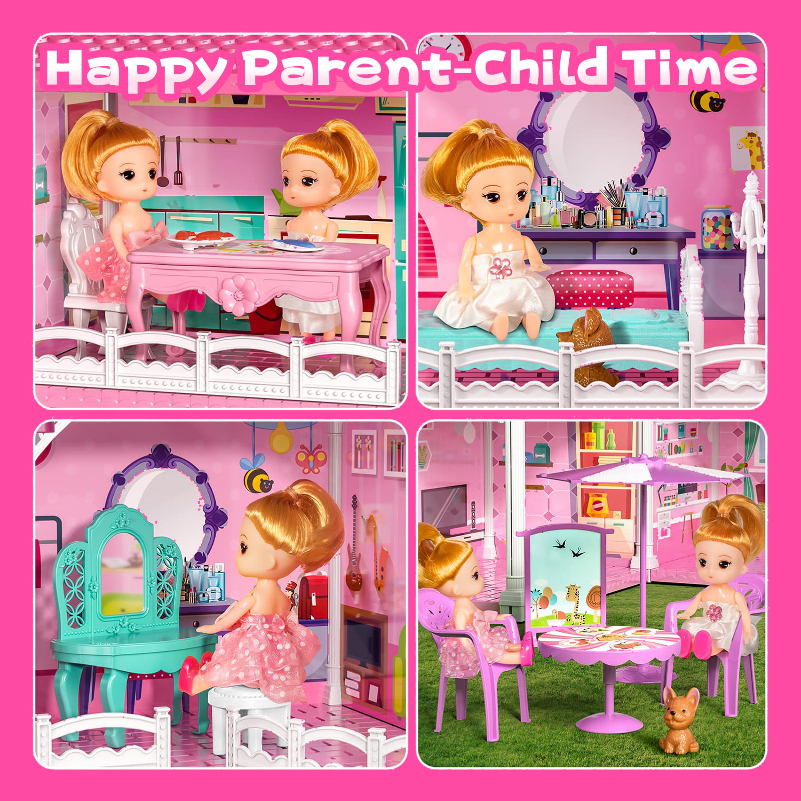 HopeRock 3-Story 8 Rooms Playhouse. with 2 Dolls Toy Figures. Dream House Doll House 7-8 for Girls. for Girl Boy Toys Age 3+
