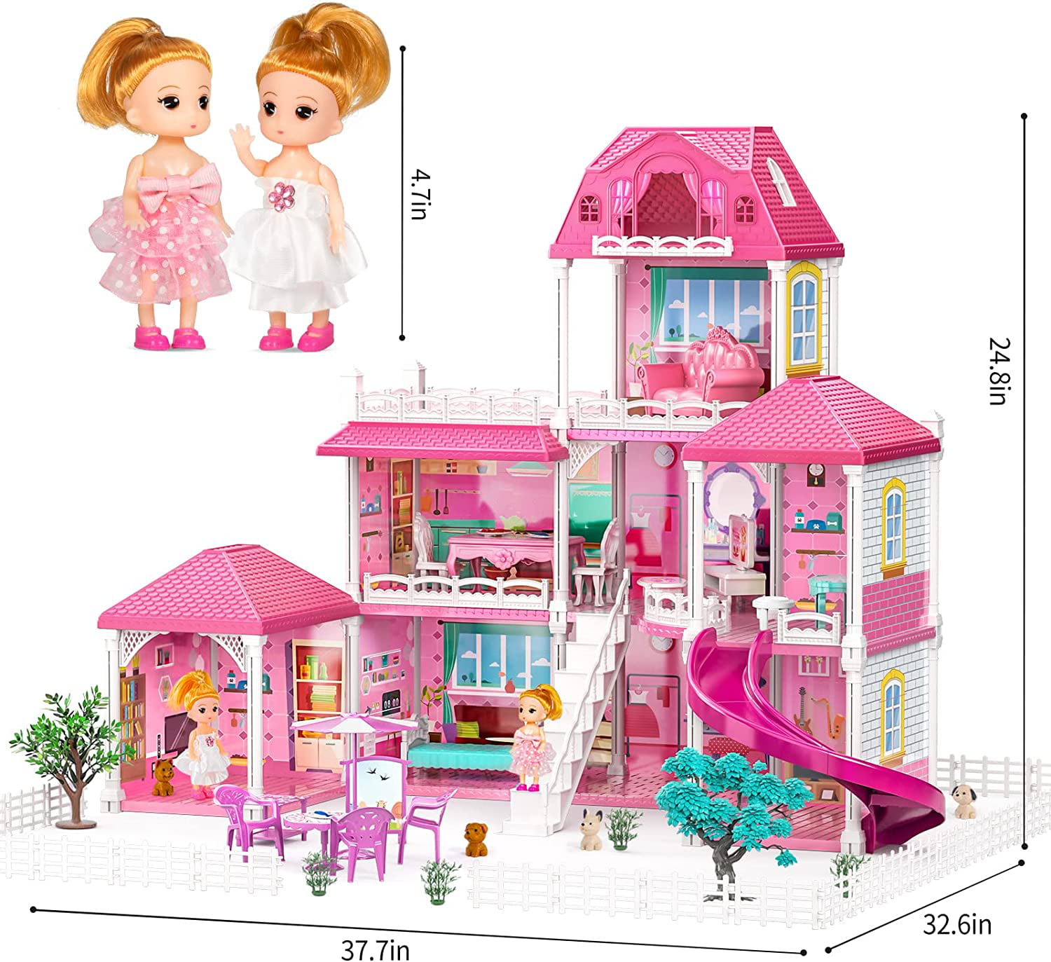 Huge Wave Doll House with Furnitures Toys for Girls. 6 Rooms Dollhouse with Slide. Dream House Doll House for Girls Boys Age 3+